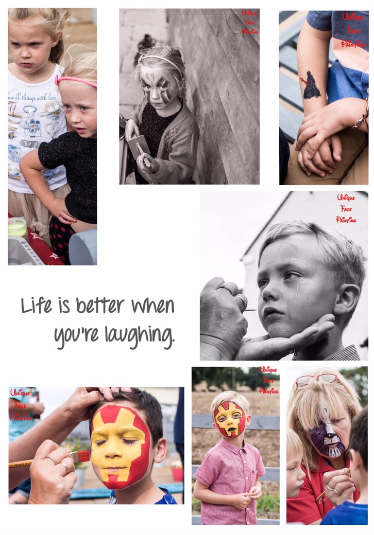 Unique because you are, everyone is different I taylor make your special event to you. I make stencils for your face painting and glitter tattoos, working with companies to promote openings, small business launches, parties, birthdays, open days, plus fun days, festivals, charity events, school fetes, conferences, sports events, and much more. I love children they make me laugh, I love to see their faces when they see their face paint. Please message me in my contact page, for information let me know what your event is about please so I can get an idea how to help you. Thank you for taking a look at my business.